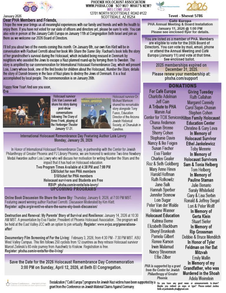 2024 was an active and successful year for Phoenix Holocaust Association.  Read about what PHA and its active volunteers accomplished during 2024.  Please consider joining PHA to help advance our programming. To join Support – Phoenix Holocaust Association (phxha.com)